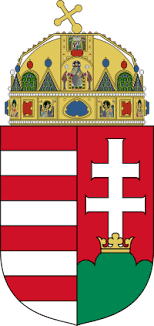 آرم سلطنتی جمهوری مجارستان یک سپربرجسته است. قسمت سمت راست از یک صلیب دو رنگ نقره ای روی پایه قرمز تشکیل شده است که در داخل تاج طلایی کوچک واقع شده است ، تاج در قسمت میانی سه تپه سبز قرار گرفته است. در سمت چپ نوارهای به اصطلاح ارپاد ، چهار نقره و چهار راه راه قرمز قرار دارد. قسمت بالای سپر دارای تاج مقدس مجارستان است.